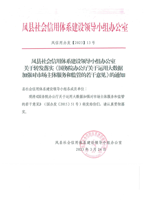 支持探索开展社会化的信用信息公示服务。建设“信用中国”网站,归集整合各地区、各部门掌握的应向社会公开的信用信息,实现信用信息一站式查询,方便社会了解市场主体信用状况。各级政府及其部门网站要与“信用中国”网站连接,并将本单位政务公开信息和相关市场主体违法违规信息在“信用中国”网站公开。 |