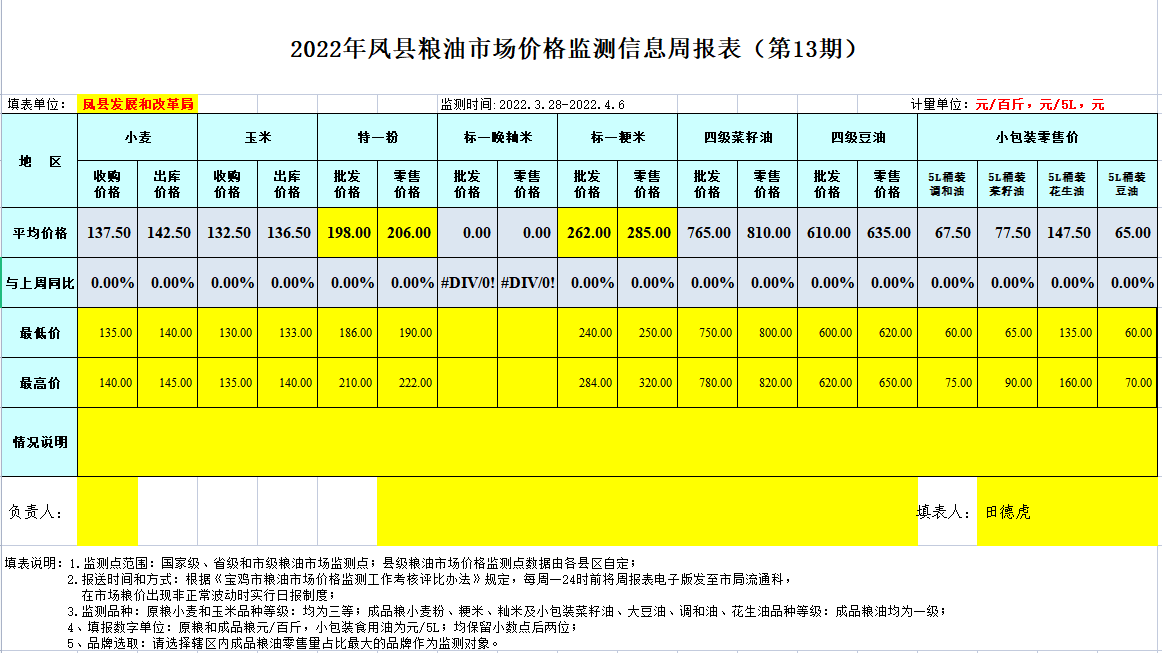 2022年凤县粮油市场价格监测信息周报表(第13期)