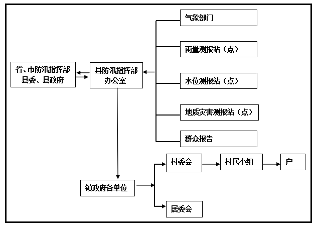 3.3.1 防汛信息系统:通过全县自动雨量监测器、自动雨量与水位监测器和水位流量视频观测器作为汛情监测预警支持平台。各镇、村要以简易雨量器、无线预警广播、河道水位报警器和简易水尺做为汛情监测预警支持平台,为防汛工作开展提供预警信息。