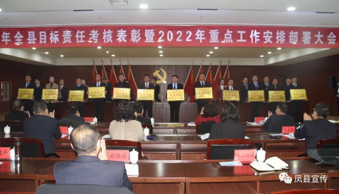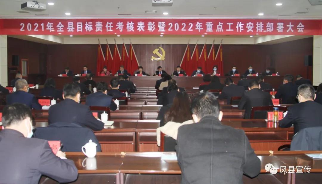 2月8日,凤县召开2021年目标责任考核表彰暨2022年重点工作安排部署大会。县委书记张扬出席会议并讲话。县委副书记、县长蒋铃安排2022年经济社会发展工作。