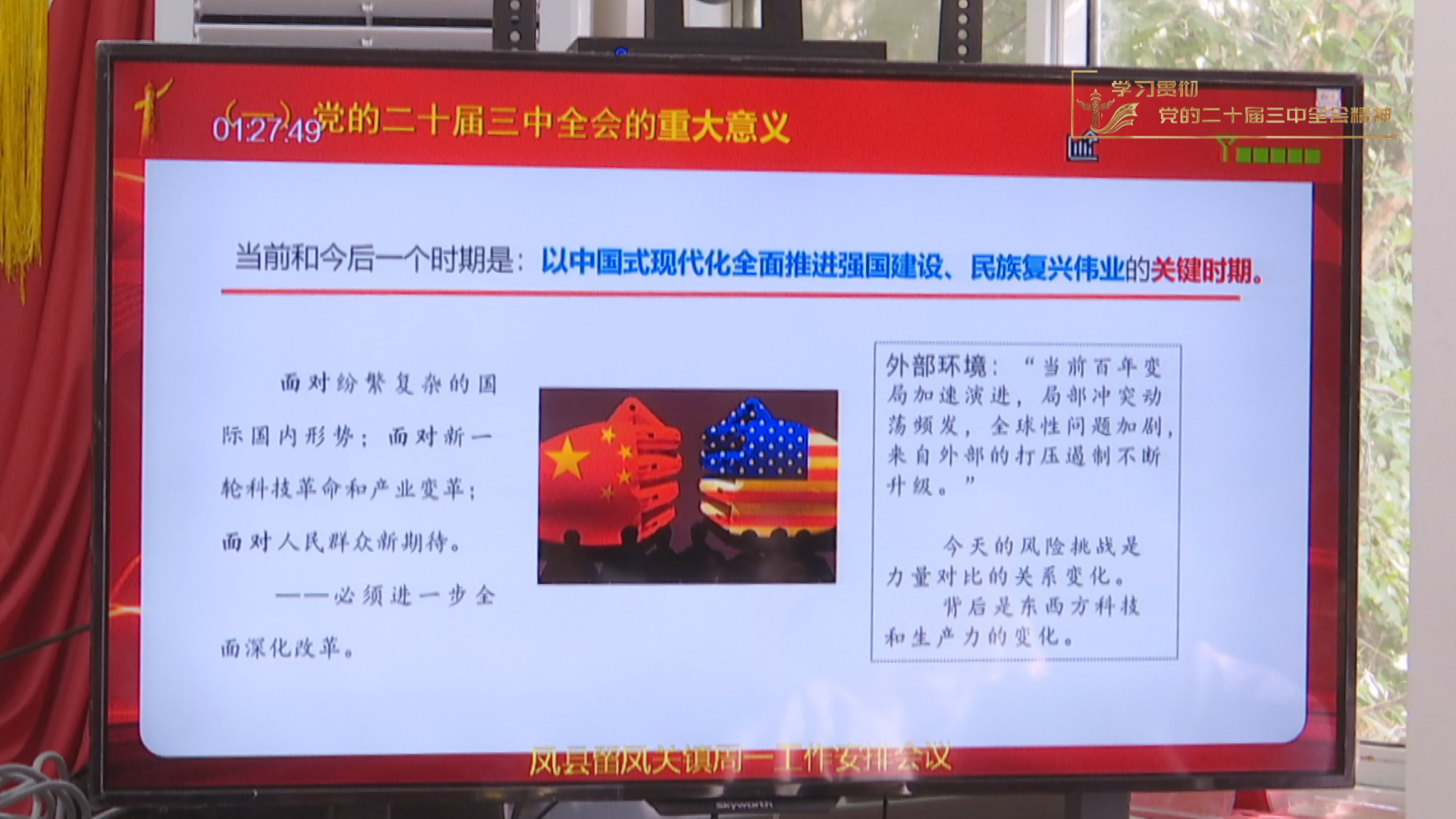 据了解,为深入学习贯彻党的二十届三中全会精神,深刻领会全会精神要义,推动党的二十届三中全会精神深入人心,我县组建“学习贯彻党的二十届三中全会精神县委宣讲团”,赴各镇、各领域和有关行业开展系统集中宣讲,推动全会精神在党员干部群众中入脑入心。大家纷纷表示,要以宣讲学习为契机,坚决将学习成果转化为履职尽责、勇于担当的实际行动,以更加饱满的热情和更加务实的态度为凤县发展贡献力量。